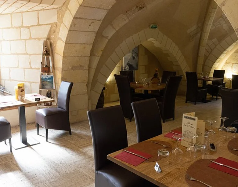 Le restaurant est niché dans une ancienne chapelle du XIIe siècle, offrant une atmosphère authentique.